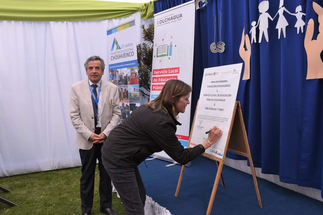 El día 06 de octubre en una hermosa ceremonia, se firmó el Convenio entre SLEP Colchagua y Fundación Educacional Choshuenco, enmarcado en el programa de transferencia pedagógica de esta fundación y financiado por la Viña Concha y Toro, que beneficiará a todos los jardines pertenecientes al Servicio Local de Educación Pública Colchagua. Durante la ceremonia se realizó una presentación artística en la que participaron niñas y niños de Nivel Medio Heterogéneo. Además contamos con la presencia del destacado artista local Gilberto Acevedo.